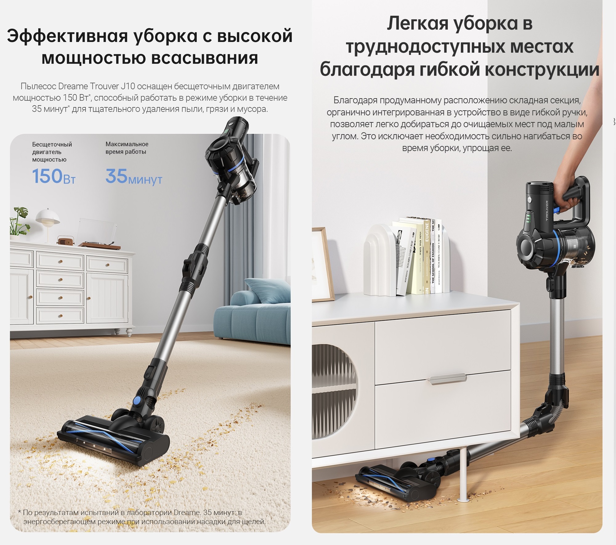 ОписаниеЛёгкий беспроводной пылесос. Время работы до 35 минут. Складная трубка. Моющиеся компоненты.ОсобенностиСветодиодная многофункциональная щетка. Лёгкий вес - всего 1.07 кг. Эффективность фильтрации 97%.
