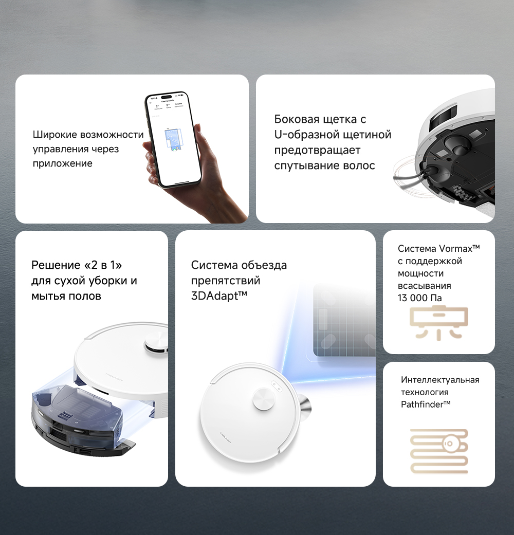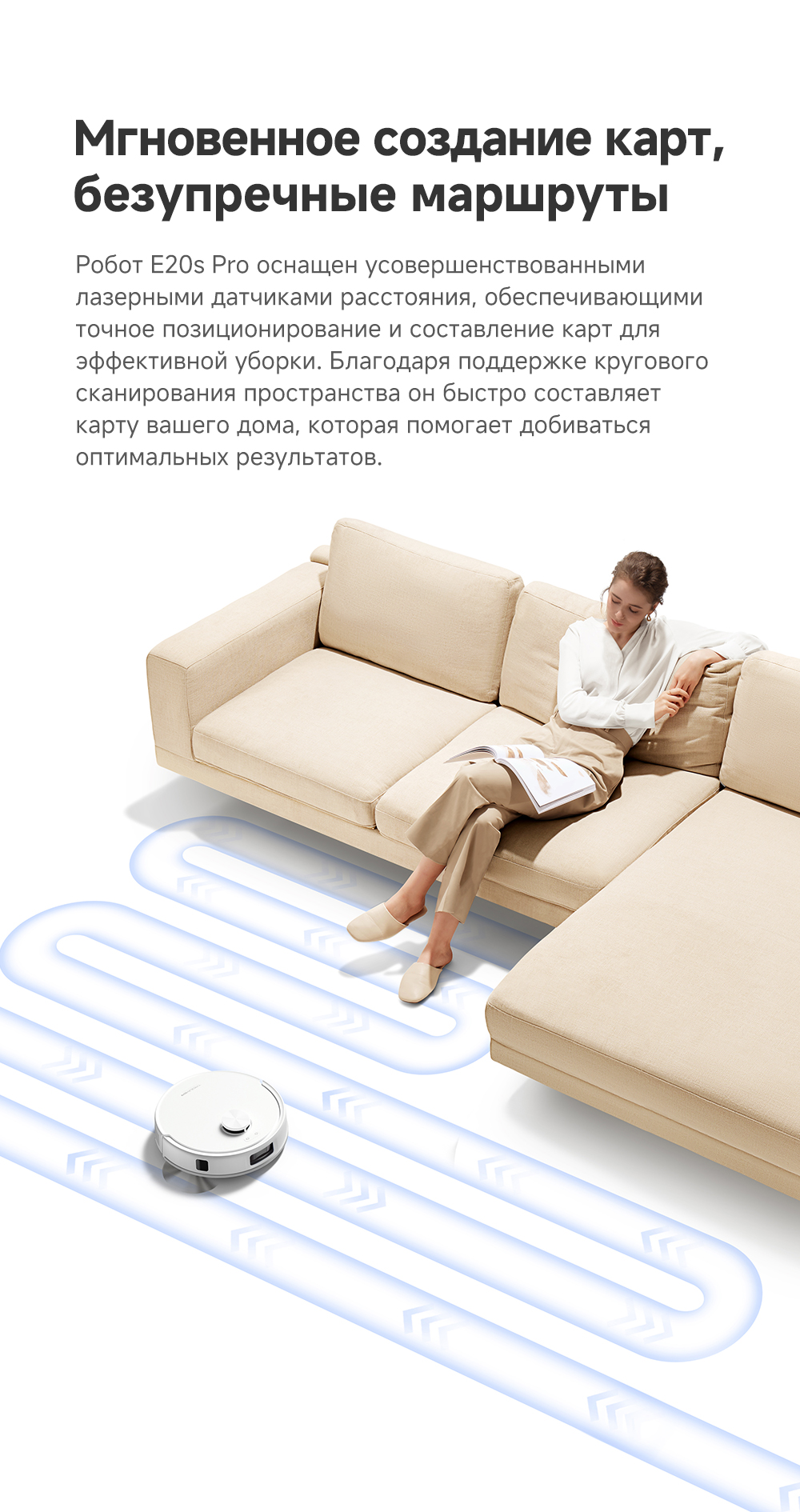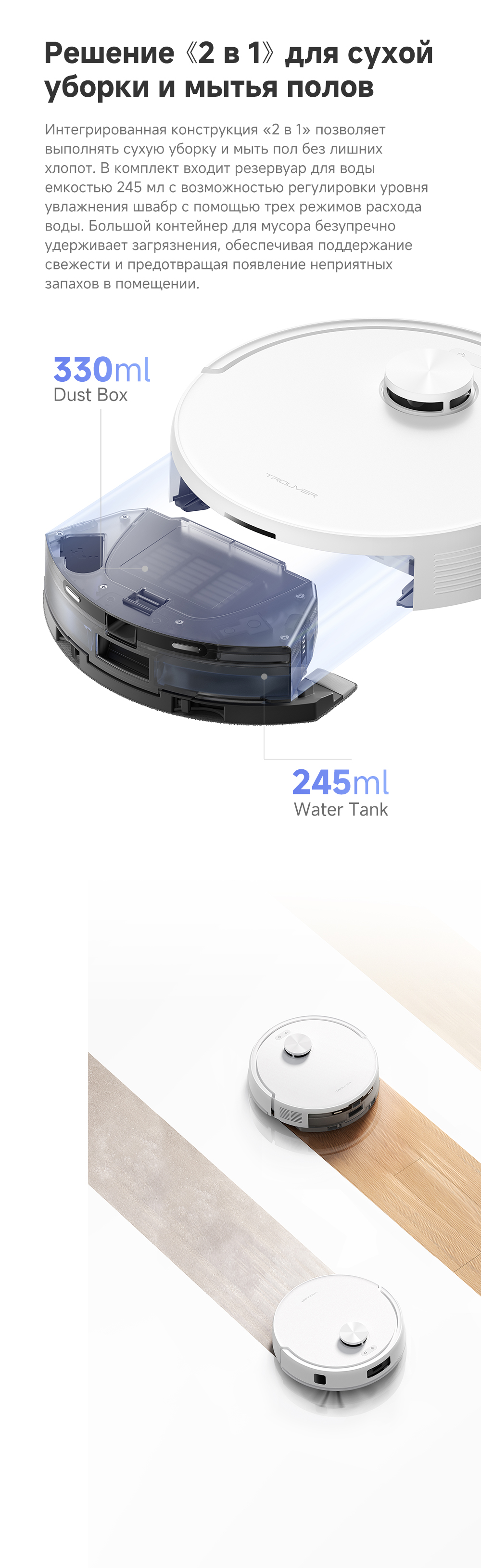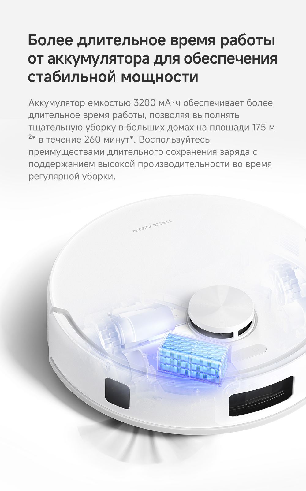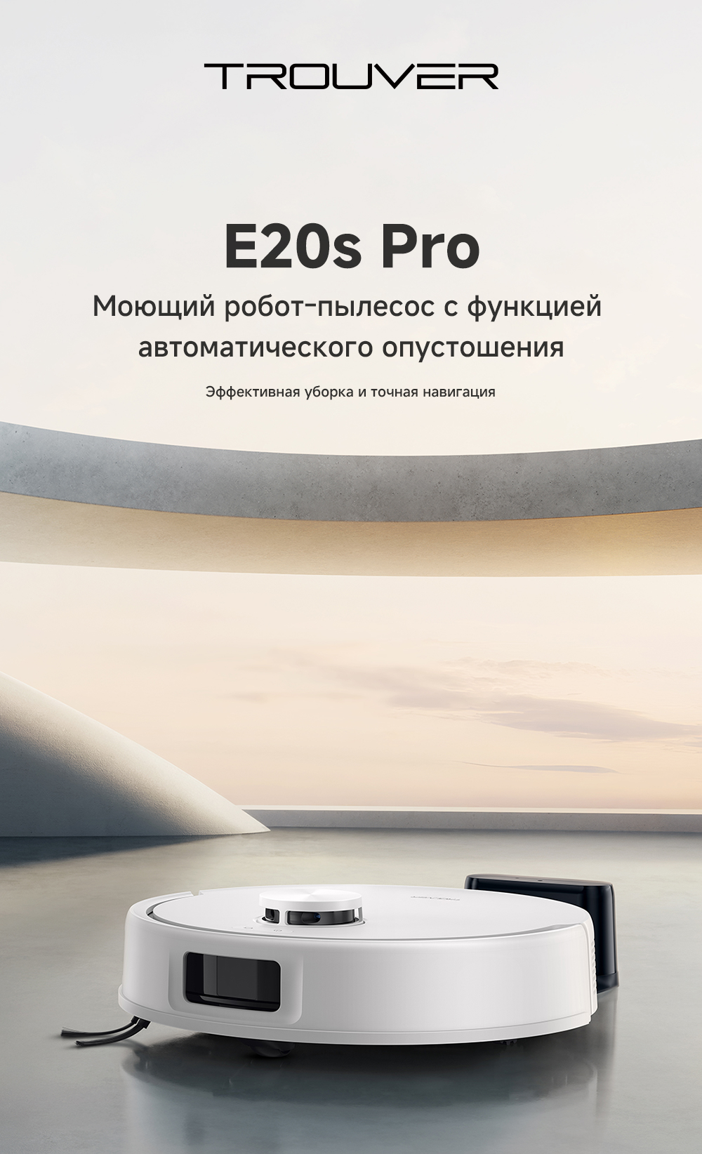ОписаниеМоющий робот-пылесос TROUVER E20s Pro с мощностью всасывания 13 000 Па и системой объезда препятствий 3DAdapt прекрасно справляется с повседневной уборкой, делая уборку полов проще простого.ОсобенностиУсовершенствованная защита от наматывания волос и шерсти: U-образная боковая щетка, направляющий гребень с воздушным обдувом, V-образная основная щетка. Решение 2 в 1 для сухой уборки и мытья пола. Ультразвуковой датчик распознавания ковров и автоматическое увеличение мощности всасывания.