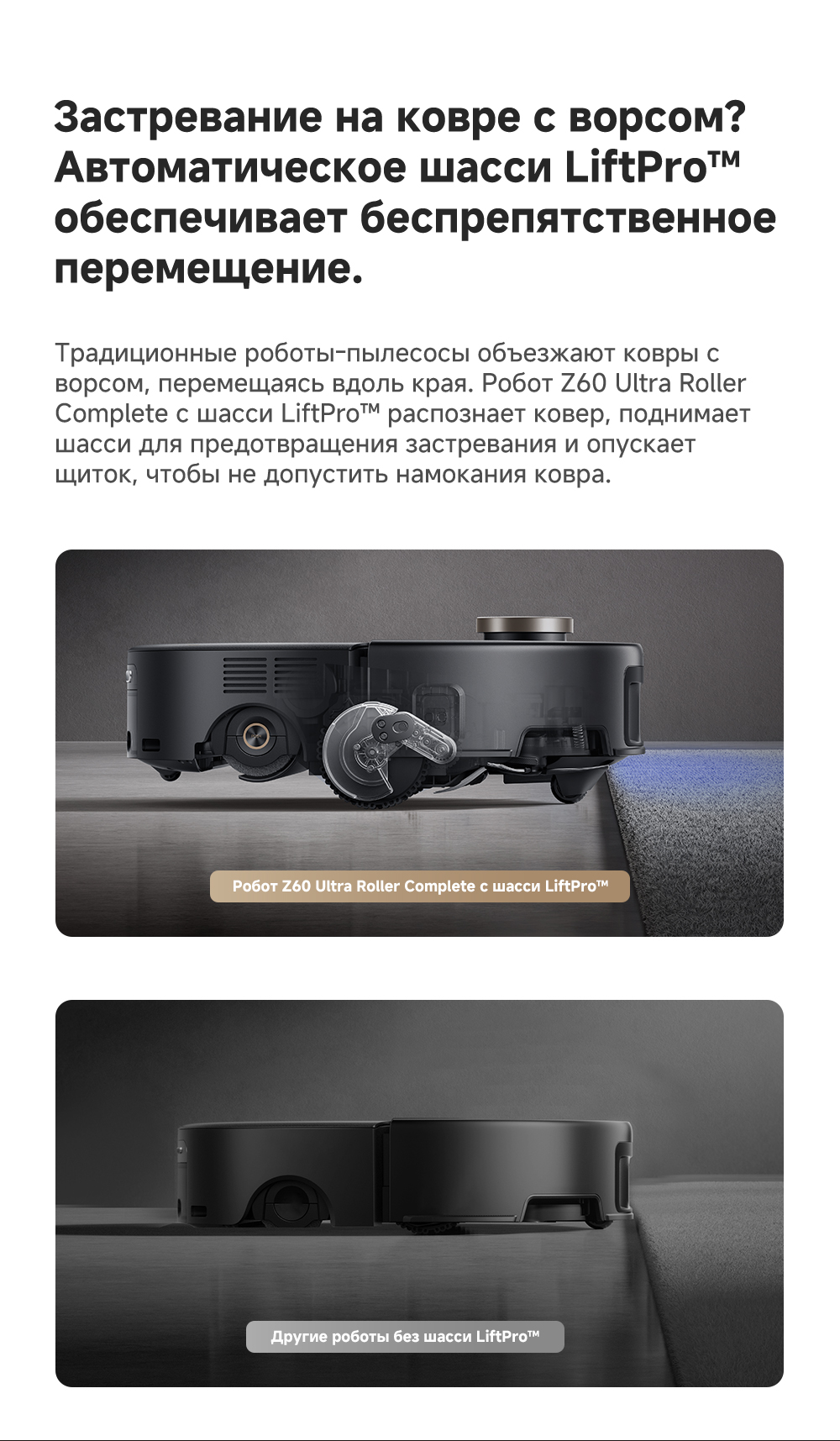 МодельZ60 Ultra Roller CompleteОписаниеМощная и тщательная очистка, умный обход препятствий, комплексная уборка.ОсобенностиМытьё полов HydroForce - система распыления с 12 форсунками, мощное удаление грязи на 360°. Система StepMaster 2.0 - преодоление двойных порогов высотой до 8 см (4.5 + 3.5 см), преодоление одиночных порогов высотой до 4.8 см. Автоматическая очистка сухого мусора, заправка моющим средством, очистка швабры горячей водой и сушка горячим воздухом. Двойная щётка TroboWave с защитой от запутывания волос. Распознавание более 200 типов препятствий с помощью ИИ.Типробот-пылесосНазначениедля полаМобильное приложениеTrouverВысота преодоления препятствий, см8ГалереяКомплектацияРобот-пылесос, базовая станция, пластина для увеличения рампы базовой станции, руководство пользователя, модуль автоматической подачи чистящего средства с двумя отсеками (предварительно установлен), мешок для мусора (предварительно установлен), роликовая швабра (предварительно установлена), боковая щетка (предварительно установлена), поддон для мытья швабр (предварительно установлен), ингибитор образования накипи (предварительно установлен). Дополнительная комплектация: основная щетка - 1 шт; боковая щетка - 2 шт; фильтр контейнера для мусора - 3 шт; мешок для мусора - 3 шт; роликовая швабра - 3 шт; ингибитор образования накипи - 1 шт; средство для устранения неприятных запахов, связанных с домашними животными 200 мл - 1 шт.Мощность всасывания (Па)28000Датчик обнаружения препятствийдаБак для использованной воды (л)3.5Объем контейнера для грязной воды, л3.5Бак для чистой воды (л)4Объем пылесборника базы (л)3.2Объем пылесборника (л)0.21Станция самоочисткидаСерияZ - серияСистема фильтрацииHEPA-фильтрСоставление плана помещенияЕстьТаймер включениядаТип уборкивлажная / сухаяУборка ковровЕстьТип управлениякнопочное / со смартфона / через приложениеУправление со смартфонадаЦветчерныйВлажный тип уборкидаСухой тип уборкидаНавигационная системаVersaLift (опускающийся LiDar): LDS AI + 3DПостроение карты помещениядаПрорезиненные колесадаАвтоматический поиск зарядного устройствадаЗарядка робота-пылесосадок-станцияБоковые щеткидаРежим "уборка вдоль стены"даУборка по расписаниюдаФильтр HEPAдаДатчик перепада высотыдаИндикация включениядаАвтоматическая работадаТип электропитанияот аккумулятораТип аккумулятораLi-IonЕмкость аккумулятора (мAч)6400ТурборежимдаЗвуковой сигналдаИндикатор включениядаМатериал корпусапластикМинимальная цена со скидкой4699Краткое наименованиеZ60 Ultra Roller CompleteРазмеры35х35х9.6 см(с опущенным лидаром)ИзготовительMoonstone Technology (Shaoxing) Co., Ltd. Room 301, 3rd Floor, Building 2, No. 99 Chuangxing Road, Sunduan Street, Yuecheng District, Shaoxing City, Zhejiang Province, Китай.ИмпортерООО "АйТи Дистрибуция", 223053, Республика Беларусь, Минская область, Минский район, Боровлянский с/с, 103/3-7, помещение №7-50Срок гарантииОсновной корпус (включая материнскую плату, камеру, вентилятор, датчики, пылесборник, водяной бак), зарядная станция, база для самоочистки 36 мес./Колёса, аккумулятор, узел мгновенного нагревателя 12 мес.