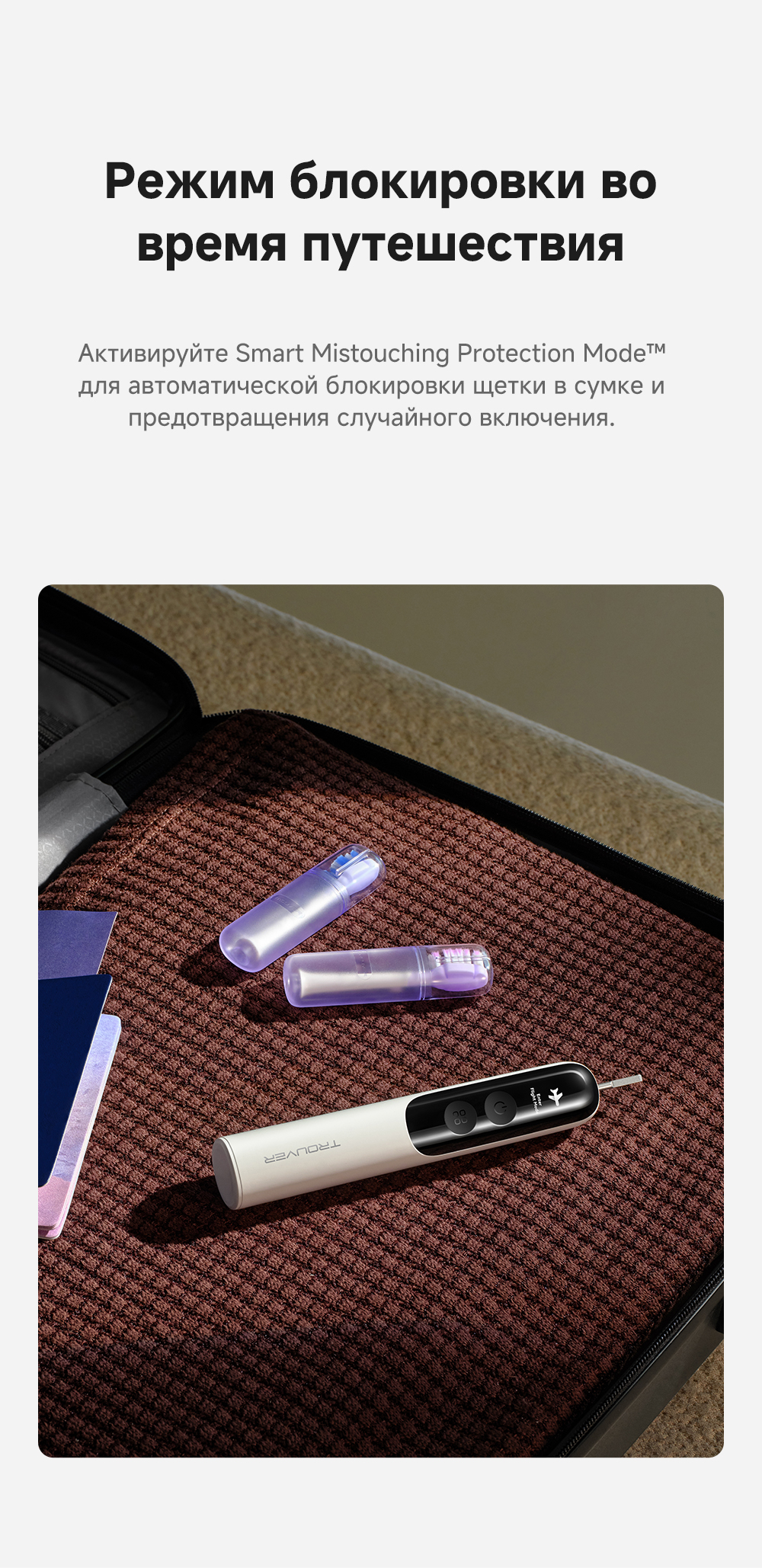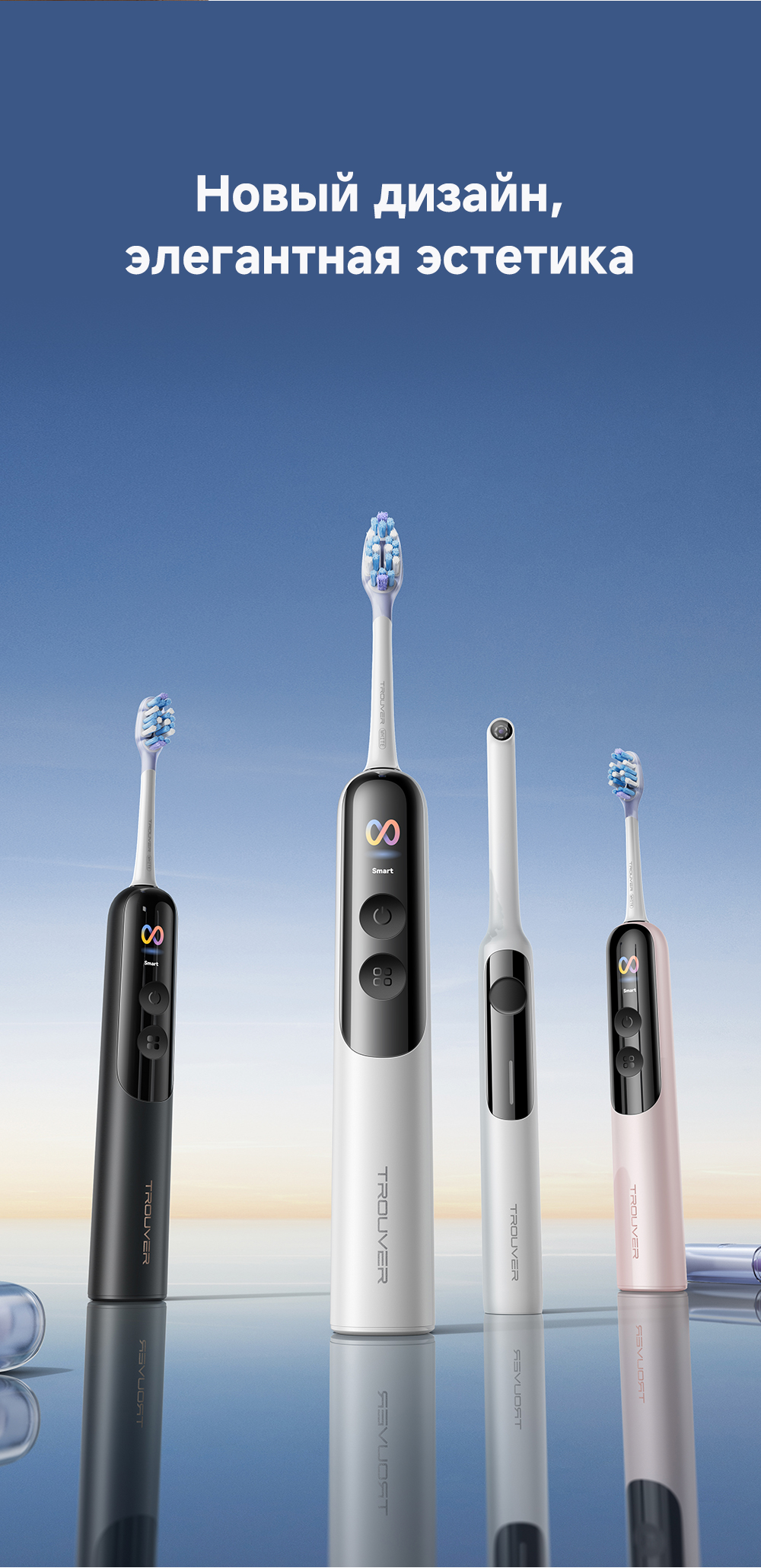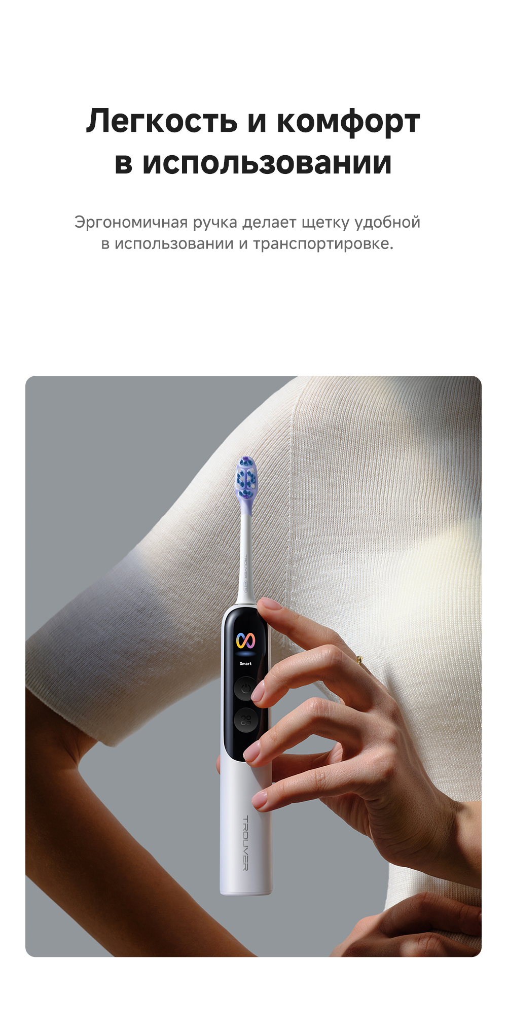 Система двойной чистки: очищение + обработка ультразвуком. Система визуализации зубного налета. Новый подход к безопасности личной гигиены: защита от влаги IPX8, 120 дней автономной работы. 4 режима (10 настраиваемых уровней интенсивности).