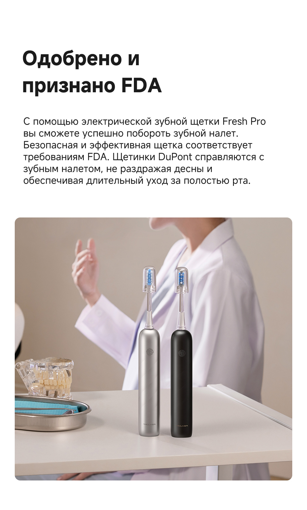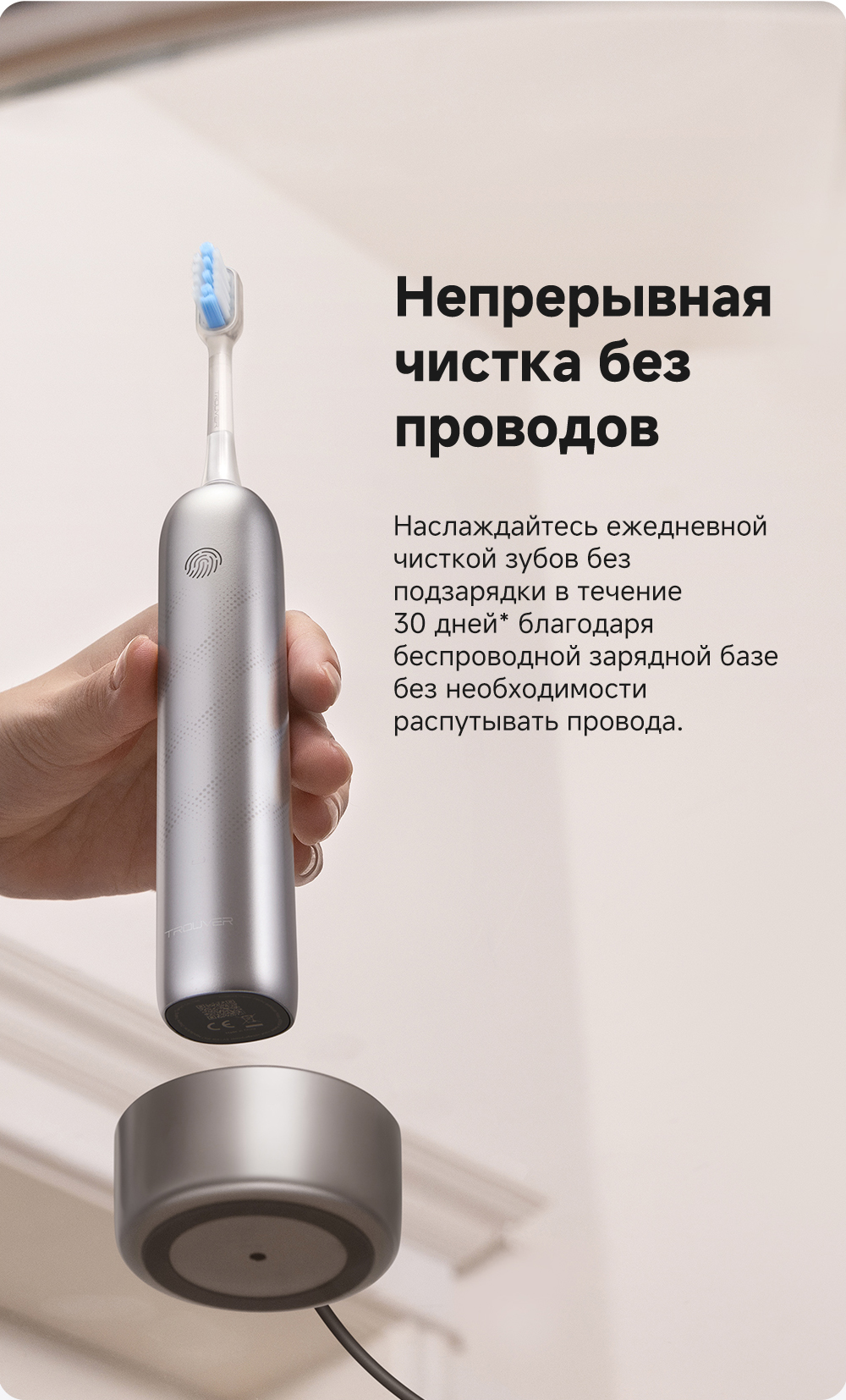 Безупречная чистка на 360 градусов. С лёгкостью удаляет зубной налёт. 30 дней автономной работы. Устройство одобрено FDA.